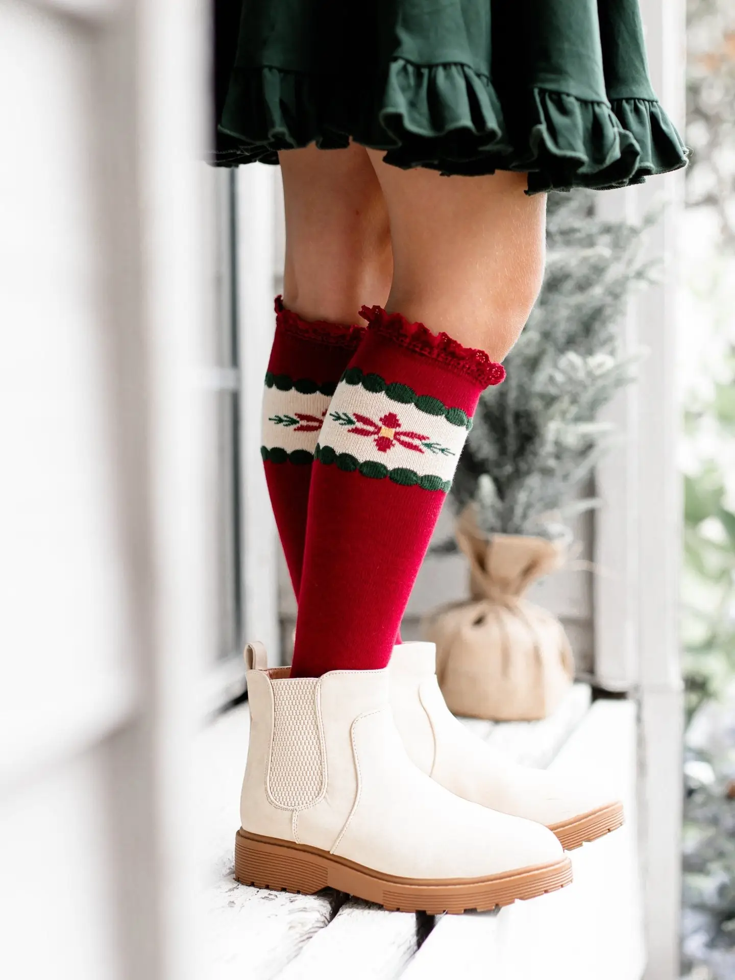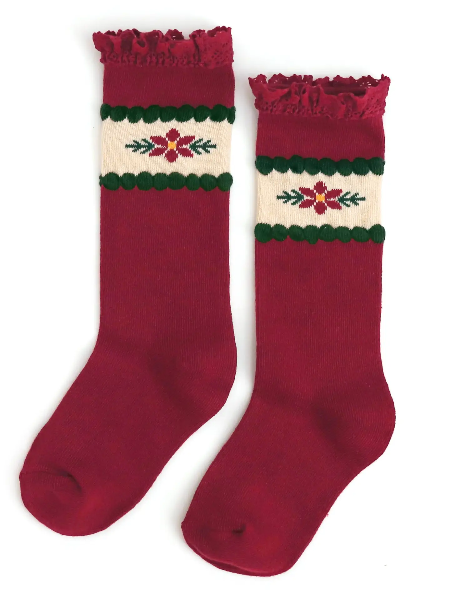 Poinsettia Lace Top Knee High Socks Our lace top knee high stockings are a fan favorite! And for good reason!