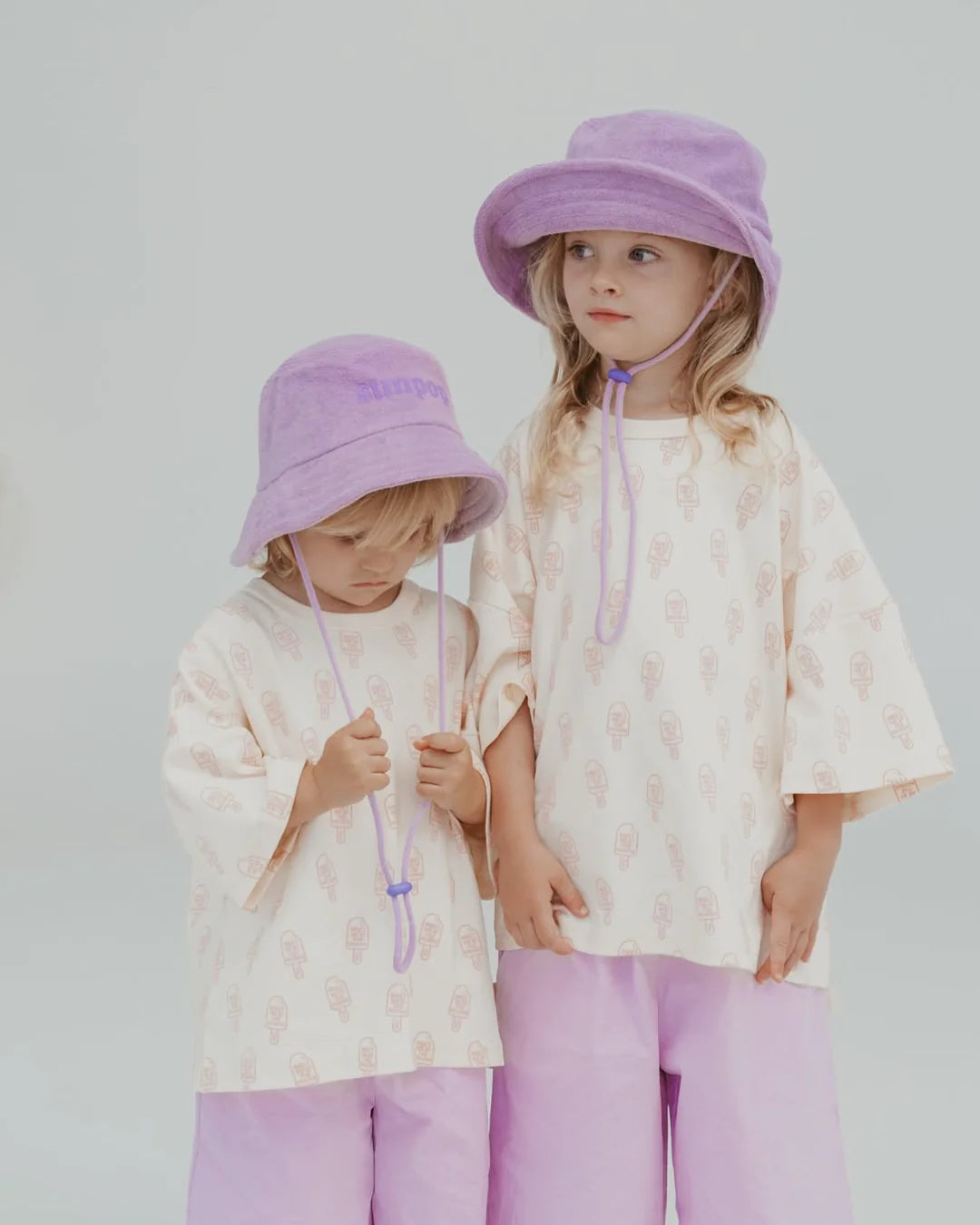 Terry Towelling Bucket Hat – Sunpop Edition. Super soft, medium weight terry fabric, this laid-back essential is made for kids who love style as much as play.