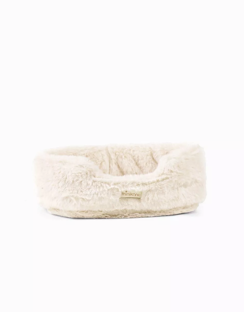 Sold with his pink faux leather collar and his padded basket in ecru Rabbit faux fur.