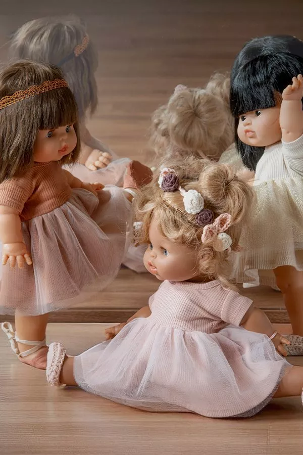 Rosella tutu in jersey/tulle and her pair of lace-up dance shoes for Minikane Gordis dolls 34 & 37cm .