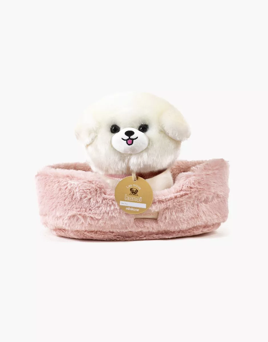 Sold with her pink faux leather collar and her padded pink Rabbit faux fur basket.