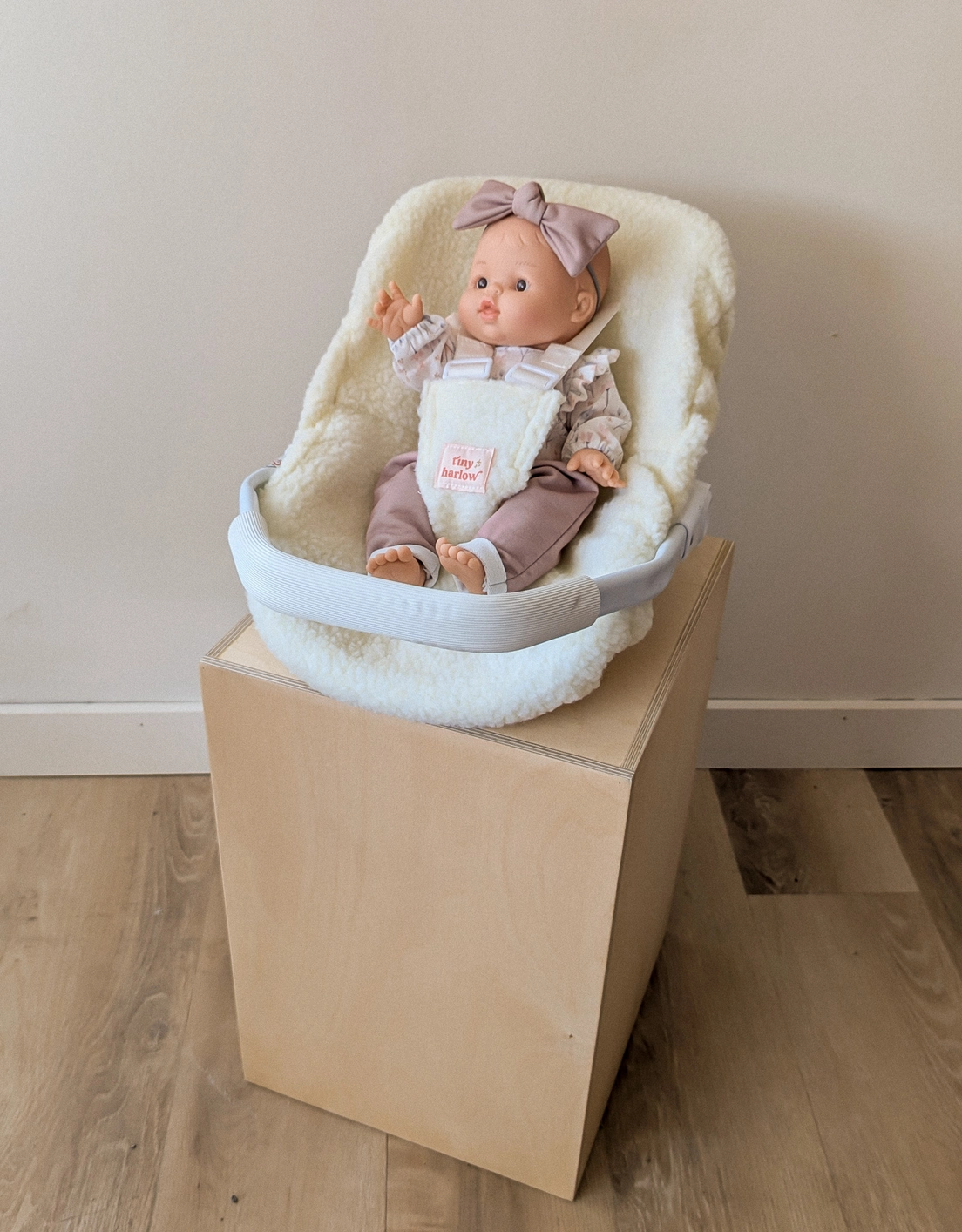 Introducing the Tiny Harlow capsule, perfect for carrying your precious doll! Practical, durable, and pretty, it will delight children who want to take their doll everywhere with them. The doll even attaches like a real baby, using a strap and a click closure!